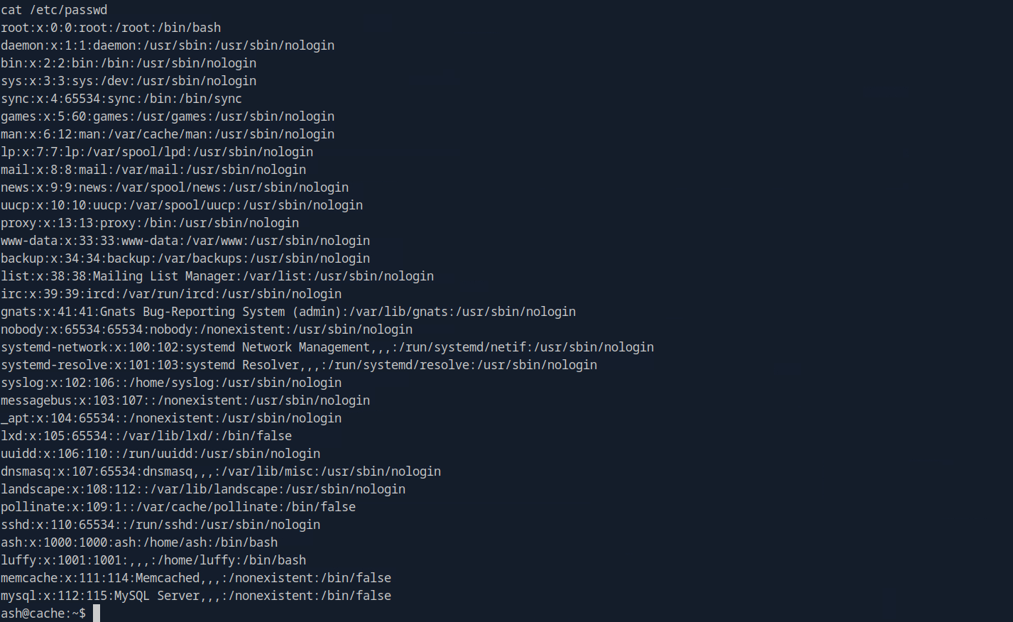 From there we can su to user ash and use the same password we found earlier on the javascript code for the useless login page.