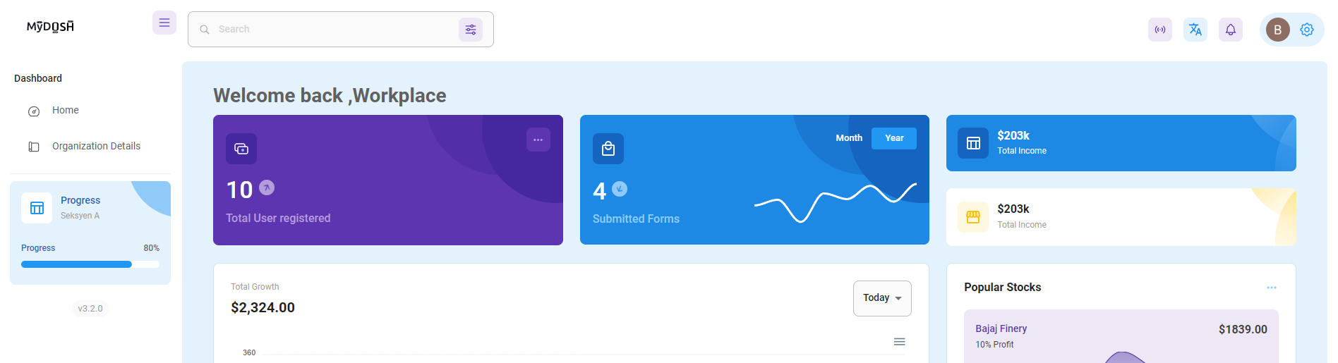 Workplace dashboard .