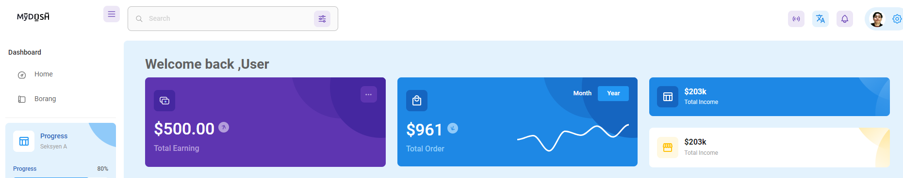 User's dashboard .