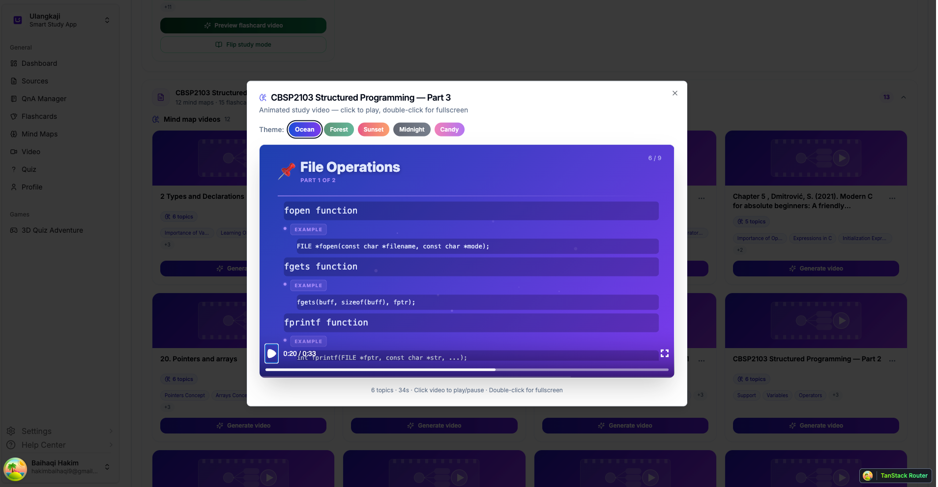 That is one of the main reasons I built Ulangkaji.net. I wanted something that could help me study better from my own materials, understand topics faster, and remember important points more effectively without wasting time jumping between different tools. Whether it is reading notes, asking questions from a document, using mind maps, watching short study videos, or learning through quizzes, the goal of this update is to make the whole study process smoother and more useful in real life.